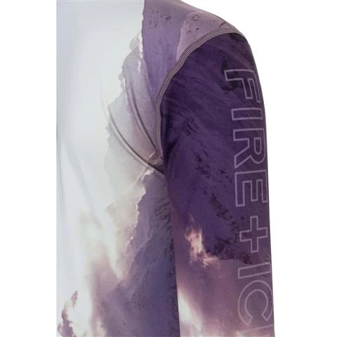 Allover sublimation photo print first layer. Logo print at lower left sleeve.