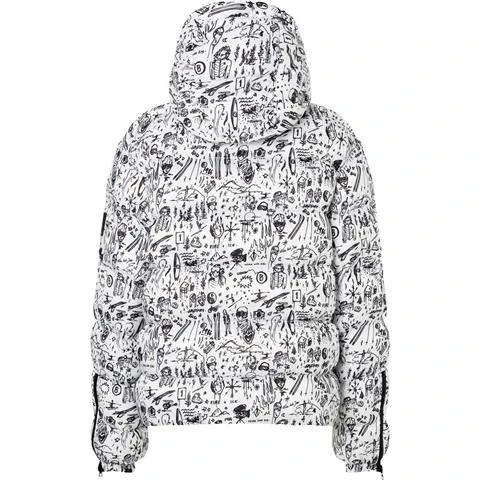 Oversized jacket with drop shoulders and gussetted zip sleeve hems. Rubber logo at upper left sleeve. Elastic tape for sleeve hem.