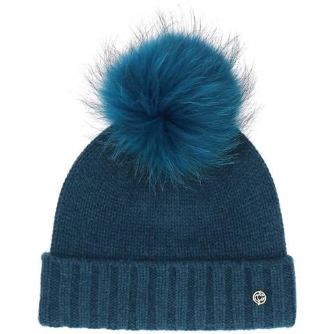 Ultra-soft cashmere beanie with wide cuff and tanuki fur pom