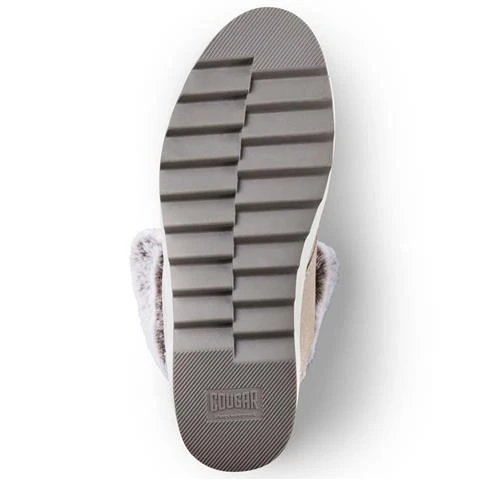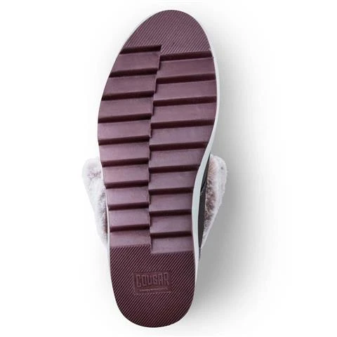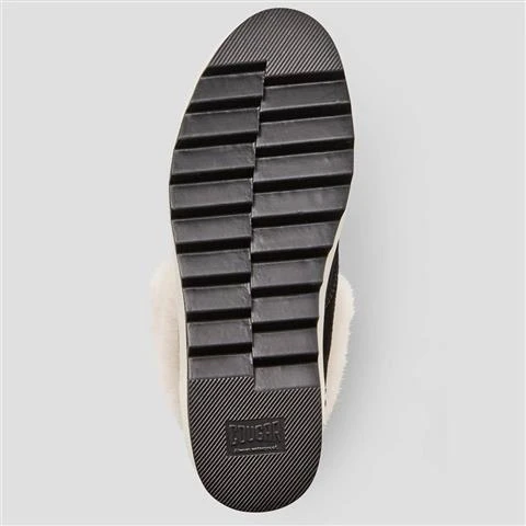 Mid-calf slip-on boot with faux fur collar. Rounded toe. Contrast front-lace closure with ankle wrap. Lightweight polyurethane cushion outsole with contrast stripe.