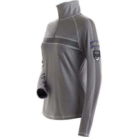 Midweight heathered 1/4 zip t-neck featuring NILS original patches, natural wicking properties and contrast coverstitch.