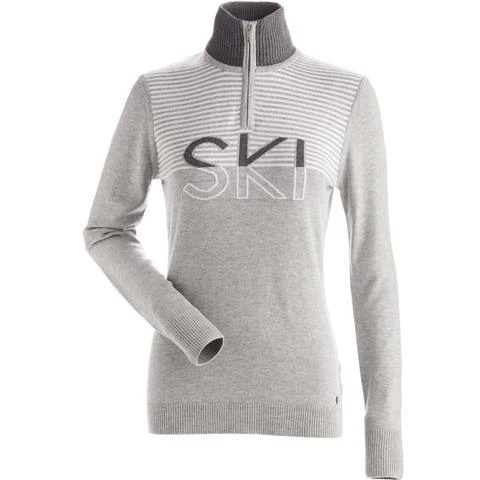 ¼ zip single knit SKI logo sweater with jacquard stripes on upper body and contrasts collar.