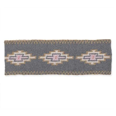 Fine gauge knit headband with a multicolor diamond pattern in super soft yarn, contrast stitched edges